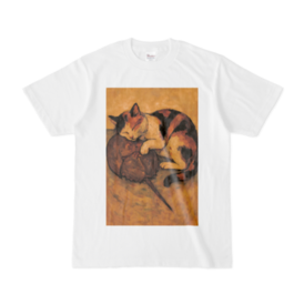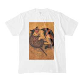 Tシャツ - XL - 白※この商品はpixivFACTORYで作られた商品です。サンプル画像は完成イメージのため、実物と異なる場合があります。 使用しているのは、ChatGPTに以下のプロンプトを入力し、生成された画像になります。 「カブトガニを枕に三毛猫が昼寝をしている様子をシーレ風に描いてください。」 (生成された画像には、一部当方で手が加えられている場合があります。)