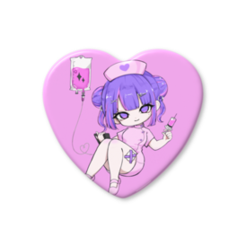 ハート缶バッジ - 57 × 52.5mmナース衣装のハート型缶バッジ【ピンク】 illustration : 嶋 (しま)🌙 様
