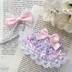 10~12cm 薄紫のギンガムチェック×ピンクのリボンのワンピース