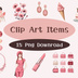 60年代風レトロピンクイラスト|クリップアート15点セット(PNG透過)