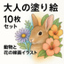大人の塗り絵セット|花と動物の癒しの線画イラスト10枚
