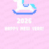 レトロファンシーな色合いのドット絵の木馬のイラストです。