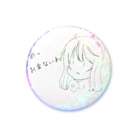 ホログラム缶バッジ - 25mmため息も出るけど、どこか愛らしい…そんな「お金がない」状況を、最高にキュートでコミカルなタッチで表現したオリジナルイラストグッズです!