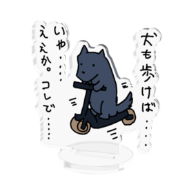 アクリルフィギュア - 50x50mm「いや・・・、ええか。コレで・・・」 あの有名なことわざ「犬も歩けば棒に当たる」を、現代風にゆる~くアレンジ! 棒ではなく、電動キックボードに軽快に乗ってしまったワンちゃんのアクリルスタンドです。 ちょっぴり不本意そうな、でも楽しんでいるような、複雑な表情がたまらない一品。 「行動すれば、思わぬ幸運(または災難)に出会う」という元々のことわざの意味から、「とりあえず動いてみよう!」という前向きな気持ちを後押ししてくれるかも? デスクや棚に飾って、あなたの日常にクスッと笑えるユーモアと竹を割ったような清々しい決断力を! 【商品仕様】 サイズ:50mm×50mm 素材:アクリル 印刷:UVインクジェット印刷