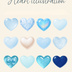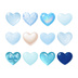 水色クリア&宝石カットの透明感ハート12点セット|ジェル/オーロラ/スノー/パール(背景透過PNG)