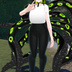 クラエナさん https://gomigomi.booth.pm/items/6582742 用のハイウエストなレザーパンツ(レザースキニー)、トップス、レザーブーツのセットです。バイクが似合いそうなカジュアルなリアクロが欲しかったので作りました。