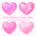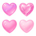 ぷるん透明ピンクハート4点セット|ジェル質感・宝石カット・ガーリー素材 PNG(背景透過)