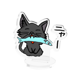 アクリルフィギュア - 50x50mm少しワイルドで愛嬌のある黒猫のアクリルスタンドです。 お魚(青魚)をくわえて満面の笑みを浮かべる黒猫。その姿は、まるで「やったぞ!」と自慢しているかのよう。ニヤリとした表情と、誇らしげなくわえ魚のコントラストがたまらない一品です。 シンプルながらも存在感があり、デスク周りや棚に飾るだけで、日常にちょっとした癒しとユーモアをプラスしてくれます。 💡 こんな方におすすめ ・猫が好きな方 ・ちょっと変わったユーモラスなイラストがお好きな方 ・デスク周りに癒やしが欲しい方 【商品仕様】 サイズ:50mm×50mm 素材:アクリル 印刷:UVインクジェット印刷 画像はイメージです。実際の商品とは色味や仕様が若干異なる場合がございます。
