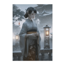 ポスター - B2この商品はpixivFACTORYで作られた商品です。サンプル画像は完成イメージのため、実物と異なる場合があります。 雪に霞む神社の境内で、横顔を見せながら静かに立つ女性を描いた和風アートポスターです。 淡い色調と控えめな表情が、冬の静けさと内省的な美しさを引き立てています。 落ち着いた空間や和の雰囲気を大切にしたインテリアにもよく合う一枚です。