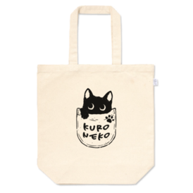 トートバッグ - M - プリント面積中お気に入りポケットでチルタイム中の黒猫くんです♪