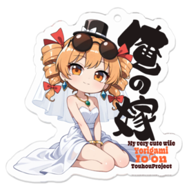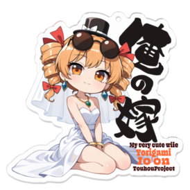 アクリルキーホルダー - 70 x 70 (mm)(キャラのみ)💍💖🔑 貧乏神を連れ歩く!女苑様(ウエディングver.)アクキーで情熱的な独占愛を携帯!💍💖 依神姉妹の姉、依神女苑への情熱的で、独占したいほどの愛を、毎日持ち運べるアクリルキーホルダーに宿しました。 東方Projectの依神女苑が、トレードマークのサングラスとシルクハットを華やかに活かしつつ、清らかなウェディングドレスを纏った、愛らしいチビキャラアクキーとして登場です! このアクキーは、貧乏神とは思えないほどゴージャスで愛らしい最高の花嫁の姿です。 このアクキーは、あなたが女苑様と結ばれた**「結婚」の証。彼女の持つ破滅的な魅力と、あなたへの「永遠の愛」が融合した、究極の愛の独占アイテムです。 これをバッグや鍵に付ければ、彼女があなたの日常を「ずっと一緒」に見守り、あなたとの愛に満ちた華麗な日常**をもたらしてくれるでしょう。 この商品はpixivFACTORYで作られた商品です。サンプル画像は完成イメージのため、実物と異なる場合があります。
