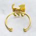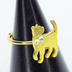 ゴールドカラー 振り向き猫シルエットモチーフのリング ラインストーン フリーサイズ