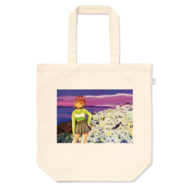 トートバッグ - M - プリント面積中幻想的な夕焼けの町に居る少女のイラストをトートバックにしてみました。Mサイズです。