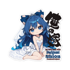 ステッカー - 160 x 160 (mm)(キャラのみ)💍💖💡 💙 不幸神と愛の誓い!紫苑様(ウエディングver.)ステッカーで、永遠の愛を身近に!💍💖 依神姉妹の姉、依神紫苑への一途で、どこまでも深い愛を、常にそばに感じられるステッカーに宿しました。 東方Projectの依神紫苑が、トレードマークの大きな青いリボンを華やかに活かしつつ、純白のウェディングドレスを纏った、愛らしいチビキャラデザインであなたの元へ!不幸神とは思えないほど、清らかで愛らしい花嫁の姿です。 このステッカーは、あなたが紫苑様と結ばれた**「結婚」の証。彼女の持つ強い不幸の力さえも愛し抜く、あなたとの「永遠の愛」を象徴するアイテムです。 これを貼れば、彼女があなたの日常を「ずっと一緒」に見守り、あなたとの愛に満ちた特別な日常**をもたらしてくれるでしょう。 この商品はpixivFACTORYで作られた商品です。サンプル画像は完成イメージのため、実物と異なる場合があります。