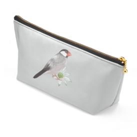 桜文鳥さんとお花のポーチ
