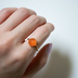 シュガーローフカットのインド産カーネリアンのリングです。 滑らかなピラミッド形状が特徴的で、ぷっくりしたゼリーのようで可愛いです。 リングは華奢なので重ね付けにもオススメです。 【リングのサイズ】フリーサイズ 【リングの素材】シルバー925・18KGP仕上げ ※刻印は入っていますが、リングが細いので写真には写っていません。 【石の種類】カーネリアン 【石のサイズ】8mm×8mm ※ 天然石を使用しておりますので、1つ1つ色や模様が異なります。ご理解の上でご購入ください。 ------------------------------------------------------------------------- 【石言葉】 友情・成功・落ち着き・勇気 【誕生石】 7月 【カーネリアンについて】 夢を叶えるためのやる気やチャレンジ精神を高め、人間関係やビジネスに最適とされています。 -------------------------------------------------------------------------