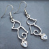 シルバーカラー 猫シルエットとスワロフスキーのハートを組合せた大人可愛いピアス サージカル可