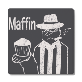 コースター - 角形🔥 甘さと危険が交差する、異色のコースターが登場! 重厚なコートに身を包み、ピストルを構えるマフィアのボス…かと思いきや、その手には焼きたてのマフィンが! ハードボイルドな世界観と、彼の意外なスイーツ好きというギャップを描いた、他にはないオリジナルのコースターです。 この商品はpixivFACTORYで作られた商品です。サンプル画像は完成イメージのため、実物と異なる場合があります。
