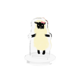アクリルフィギュア - 50x50mmふわふわした羊が、可愛いアクリルスタンドになりました! エアブラシで描かれた黒顔の羊さんです。 まるで羊毛のような ふわふわとした質感が表現された、優しい色合いのイラストが魅力。 頭にはキュートなピンクのリボンをつけています。 玄関やお部屋に飾れば、ほっこり癒やされること間違いなし! 小さくて可愛い羊さんが、あなたの毎日を見守ってくれます。 ちょっとしたプレゼントや、動物好きの方への贈り物にもおすすめです! 【商品仕様】 サイズ:50mm×50mm 素材:アクリル 印刷:UVインクジェット印刷