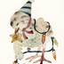こちらは水彩紙に墨、透明水彩、色鉛筆で着彩した