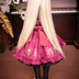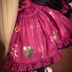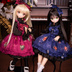 ブラウス、ジャンパースカート、パニエ、頭リボンの4点セットです。 【ブラウス】 控え目の光沢感があるジョーゼット生地を仕様しました。総裏地がつきますので、基本的にボディに触れる事はありません。 胸元には黒いレース出来たスカーフと宝石が固定されております。 【ジャンパースカート】 光沢なしの薄手ジョーゼット生地を使用し、オリジナル柄をプリントしました。 背中はスナップボタン仕様となります。 分量多く寄せてありますので、裾が広がります。 【パニエ】 ハートチュール生地で制作しました。 裾には黒のフリルがついております。 【頭リボン】 ジャンパースカートとお揃いの色の生地で制作しました。スリーピンでとめます。