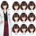 女性全身立ち絵007B 表情差分9種類 服装2種類(白衣と着物)