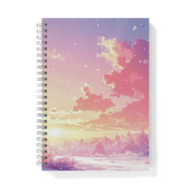 リングノート - A5 - 両面◇商品について 雪に覆われた森の奥から、夕暮れの空を見上げる情景を表紙に描いたリングノートです。 桃色に染まる雲、紫へと溶けていく空気、静かに冷えた雪原の光。 一日の終わりにだけ現れる、わずかな時間の気配を閉じ込めました。 明日も頑張れますようにと、前向きな明るい色を配色しています。 ◇デザインの特徴 - 雪原の森 × 夕焼け空をテーマにしたオリジナルビジュアル - 桃色・紫・淡い金色を基調とした、やさしく幻想的な色合い - 表紙の表裏どちらも印刷された両面表紙仕様 - 開いても閉じても世界観が途切れないデザイン構成 ◇仕様 製本:リング製本 表紙:アートポスト(表紙・裏表紙) 本文:上質紙 ページ数:80P(40枚) リングカラー:シルバー 印刷方式:インクジェット印刷 ◇おすすめの使い方 ・日記や一日の記録に ・創作アイデア・プロットメモに ・旅や季節の記憶を書き留めるノートとして ・デスクに置いて眺める、静かな作品アイテムとして ◇ご購入前の注意事項 ・印刷の特性上、実際の商品はモニター表示と色味が若干異なる場合があります。 ・強い力を加えるとリングや表紙が変形する恐れがありますのでご注意ください。 ・本作品は Adobe Firefly による生成AI機能を使用し制作しています。 Fireflyは商用利用が認められた学習データのみを用いており、権利面をクリアした画像生成環境です。 公開前にすべてのデザインを確認し、第三者の著作物に抵触しないよう配慮しておりますが、 万一お気づきの点がございましたらご連絡いただければ幸いです。 ◇発送について ・本商品はご注文後に製造されます。 ・pixivファクトリーからの発送となります ※ノート本体のみの販売です。撮影小物は付属しません。