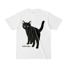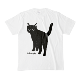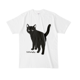 Tシャツ - XL - 白振り向いて何かを期待する黒猫くんです!