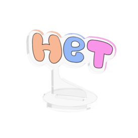 アクリルフィギュア - 50x50mmロシア語で「NO」を意味する「НЕТ」を、遊び心たっぷりのバブルフォントでデザインしました。 オレンジ、ブルー、ピンクのグラデーションが目を引く、インテリアとしても優秀なアクスタです。 身の回りのちょっとしたアクセントに。 「NO」と言いたいけれど、角を立てたくない……そんな時にもそっと寄り添ってくれるはず。