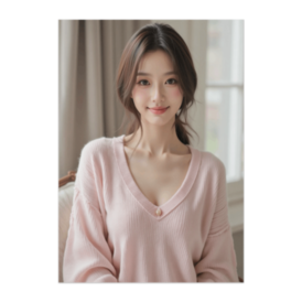 ポスター - B2この商品はpixivFACTORYで作られた商品です。サンプル画像は完成イメージのため、実物と異なる場合があります。 淡いピンクのニットに包まれた、やさしく微笑む女性を描いた癒しのポートレートです。 自然光と柔らかな表情が、見る人の心をそっと和ませます。 日常に温もりを添える、リラックス感のある一枚です。