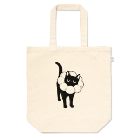 トートバッグ - M - プリント面積中ふわふわなエリザベスカラーをつけた黒猫くん!