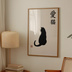 Minimalist Japanese cat wall art inspired by Zen aesthetics and modern interior design. This artwork features a black cat silhouette with the kanji 「愛猫」(Beloved Cat), creating a calm, elegant, and timeless atmosphere.