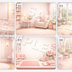 【配信背景6種セット】Sweet Blossom|ローズ香るパウダールーム&花窓ルーム背景(16:9/PNG/文字なし/VTuber配信素材)