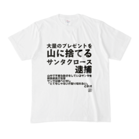 Tシャツ | 文字研究所 | 大量のプレゼントを山に捨てるサンタクロース逮捕