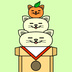 猫のお餅とだいだいが落ちてきて鏡餅が完成するアニメーションGIFになります。