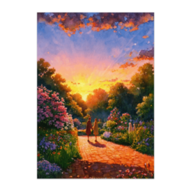 ポスター - B2この商品はpixivFACTORYで作られた商品です。サンプル画像は完成イメージのため、実物と異なる場合があります。 花に囲まれた小径を、静かに歩く二人。 沈みゆく夕日の光が、世界をやさしく包み込みます。 特別な出来事はなくても、 誰かと並んで歩くその時間こそが、心を満たしてくれる。 そんな穏やかな想いを描いた、物語のある一枚です。