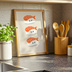 This is an original kawaii sushi illustration designed in a clean, minimalist Japanese style. Perfect as digital wall art for kitchens, dining rooms, cafes, or cozy modern interiors.
