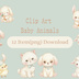 【PNG素材】大人可愛いベビーアニマルクリップアートセット(全12種/水彩スタイル/背景透過)