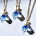 参加させていただいている催事のイベントビジュアルをイメージした作品のシリーズになります。 手作業で何度も研磨してガラスのような質感の鉱石パーツに仕上げました。 裏面(モールドにレジンを注ぐ面)のみ削りから研磨しており、他の面は仕上げ磨きのみです。ジュエルシリーズの半分程度の研磨工程になっています。 お星さまのジルコニアチャームがゆらゆら揺れるデザインです。 レジン製鉱石部分 縦約2.5cm チェーン 約55cm+アジャスター *見本の画像と色味が少し異なる場合がございますので作成するその時々の個性としてご了承ください。 手作りの一点もののため、それぞれ色味や色の入り方、ラメやパーツの配置など全く同じではありません。 個性としてご了承いただける方のみご購入ください。 ハンドメイド作品で、市販品のような強度はございませんので優しくお使いください。 ご使用後はやわらかい布などでお手入れして暗所に保管していただければより長く綺麗な状態でお使いいただけます。 着用後に汗や雨などの水分、油分、日焼け止めなどの化粧品が付着したままだと変色や劣化する恐れがありますので、アクセサリー用や眼鏡拭きなどの柔らかい布でお手入れをお願いします。 パーツ紛失などのお直しは送料+パーツ実費にて承ることが可能ですのでご相談ください。