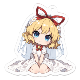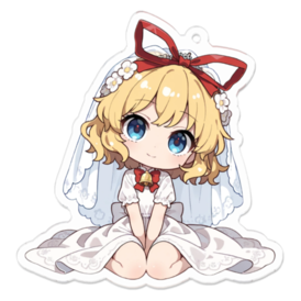 アクリルキーホルダー - 70 x 70 (mm)(キャラのみ)🔔💖 【祝・入籍】もう二度と、一人になんてさせない。メディスンと誓う、持ち歩ける**「結婚生活」**。💍💖 ねぇ、人形は捨てられない限り、ずっと一緒なのよ。……だから、あたいを『お嫁さん』にしてくれる?」 無名の丘に咲く鈴蘭のように儚くも愛らしい人形、メディスン・メランコリーが、奇跡のウエディングドレス姿であなたのアクリルキーホルダーになりました! 最大の注目ポイントは、メディスンとの**「結婚」です。 かつて捨てられた悲しみを知る彼女が、あなたを唯一無二の伴侶として選び、純白のドレスを纏いました。 照れたような、でも幸せいっぱいのチビキャラ**姿の彼女をバッグや鍵に付ければ、日常のすべての瞬間が二人の甘いハネムーンに変わります。なる場合があります。