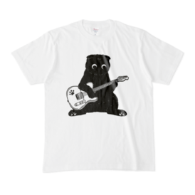 Tシャツ - XL - 白おじさん座りでギターを弾くスコティッシュフォールド君です!