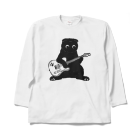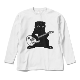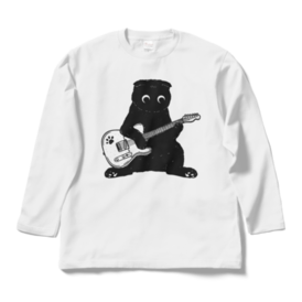 ロングスリーブTシャツ - XL - ホワイトおじさん座りでギターを弾くスコティッシュフォールド君です!