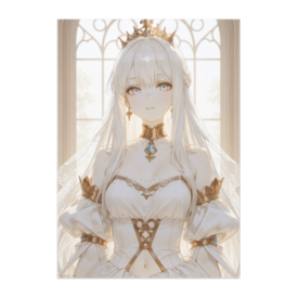 ポスター - B2この商品はpixivFACTORYで作られた商品です。サンプル画像は完成イメージのため、実物と異なる場合があります。 柔らかな光に包まれ、静かに佇む白きプリンセス。 繊細なレースと上品な装飾が、清らかで気高い雰囲気を演出します。 穏やかな表情と透明感のある佇まいは、 お部屋に静かな物語性と優雅さを添えてくれる一枚です。 ポスターとして、癒しと気品のある空間づくりにおすすめです。