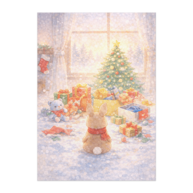 ポスター - B2この商品はpixivFACTORYで作られた商品です。サンプル画像は完成イメージのため、実物と異なる場合があります。 クリスマスツリーの前に並ぶたくさんの贈りもの。 その光景を静かに見つめる、小さなうさぎの後ろ姿。 期待とぬくもりが伝わる、 物語の始まりのような水彩風イラストです。 冬のリビングや子ども部屋にやさしくなじむ一枚です。
