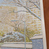今回は光の粒子をテーマに、西洋の点描画法と版画の伝統技法であるゴマ摺りを掛け合わせる試みをしました。 摺りを重ね、点の密度を変化させることで、雪の静けさや空の奥行きを表現しようと試しています。 湯島聖堂の上空を、ビル群を背景にサンタが駆け抜ける――そんな時代も場所も超えた世界を、色の粒に込めて制作しました。 ―柏木隆志 湯島聖堂とニコライ堂に降る雪です。空の上には、サンタクロース。川瀬巴水にもサンタクロースの作品があり、オマージュとして描きました。 ―つちもちしんじ