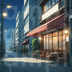 【ストリート(カフェ)・背景差分セット】差分6枚セット ゲームや配信で使えるカフェがある通りの背景画像です。 昼・夕方・夜・曇り・雨・雪シーンの差分が入っています。 【1152×896px 144dpi PNG形式】