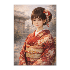 ポスター - B2この商品はpixivFACTORYで作られた商品です。サンプル画像は完成イメージのため、実物と異なる場合があります。 神社の境内を背景に、 赤い花柄の振袖をまとった女性を描いた、 王道の正月らしさを感じるビューティーアートポスターです。 清楚で落ち着いた表情と、 華やかな赤の振袖が調和し、 新年の祝福ムードをやさしく伝えてくれます。 和風インテリアや、 正月シーズンの空間づくりに最適な一枚です。