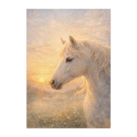 ポスター - B2この商品はpixivFACTORYで作られた商品です。サンプル画像は完成イメージのため、実物と異なる場合があります。 朝の光を受けながら、静かにたたずむ白馬の横顔。 やさしいまなざしと、風に揺れるたてがみが印象的な一枚です。 見る人の心を落ち着かせ、そっと寄り添うような存在感を大切に描いています。 新年のはじまりに、穏やかな時間を届けるアートです。