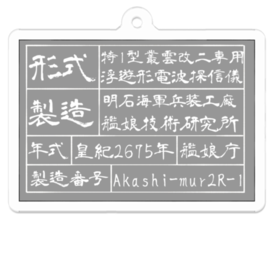 アクリルキーホルダー - 50 x 50 (mm)叢雲ちゃんの頭の上に浮いてる耳みたいな多分電探のこう、見えないとこに上手く付けられてる製造銘板です。あれどうやって浮いてるんだろうね。愛かな(?)