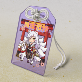 ろりちょのお守り - 50 × 80mm【2026年午年】開運厄除!燦然寺くみちょ&ろりちょ アクリル御守り 商品説明文 2026年の干支「午(うま)」に寄り添う、燦然寺くみちょの特製アクリル御守りが登場! 「開運厄除」の願いを込めて、あなたの1年を華やかに彩り、守護します。 デザインは選べる2種類! その日の気分や、推しの姿に合わせてお選びください。 ラインナップ 💜 くみちょ御守り(紫) 凛とした大人の魅力あふれる「くみちょ」バージョン。 紫を基調とした高貴なデザインで、あなたに降りかかる厄災をバシッと払い除けます!頼れる九尾として、一年間しっかり見守ります。 🩷 ろりちょ御守り(ピンク) 愛くるしい「ろりちょ」バージョン。 ピンクを基調とした可愛らしいデザインで、持っているだけで癒やし効果抜群!たくさんの福と笑顔を運び込みます。 ✨ ポイント 2026年干支デザイン: 白馬に寄り添う限定イラストを使用。 アクリル仕様: 透明感があり、丈夫なアクリル素材。カバンやポーチにつけても存在感抜群です。 本格的な飾り紐: 御守りらしい飾り結び(二重叶結び風)の紐がついており、和の雰囲気たっぷり。 おすすめの用途 初詣のお供に カバンや鍵につけて交通安全・魔除けに デスクに飾って作業の運気アップに VR・メタバースイベントへ参加する際のお供に 燦然寺くみちょ&ろりちょと共に、2026年も素晴らしい一年を駆け抜けましょう! 【製品仕様】 素材:アクリル サイズ:約 [50mm x 80mm] 付属:飾り紐(白) ※画像はイメージです。実際の商品とは色味や仕様が多少異なる場合があります。
